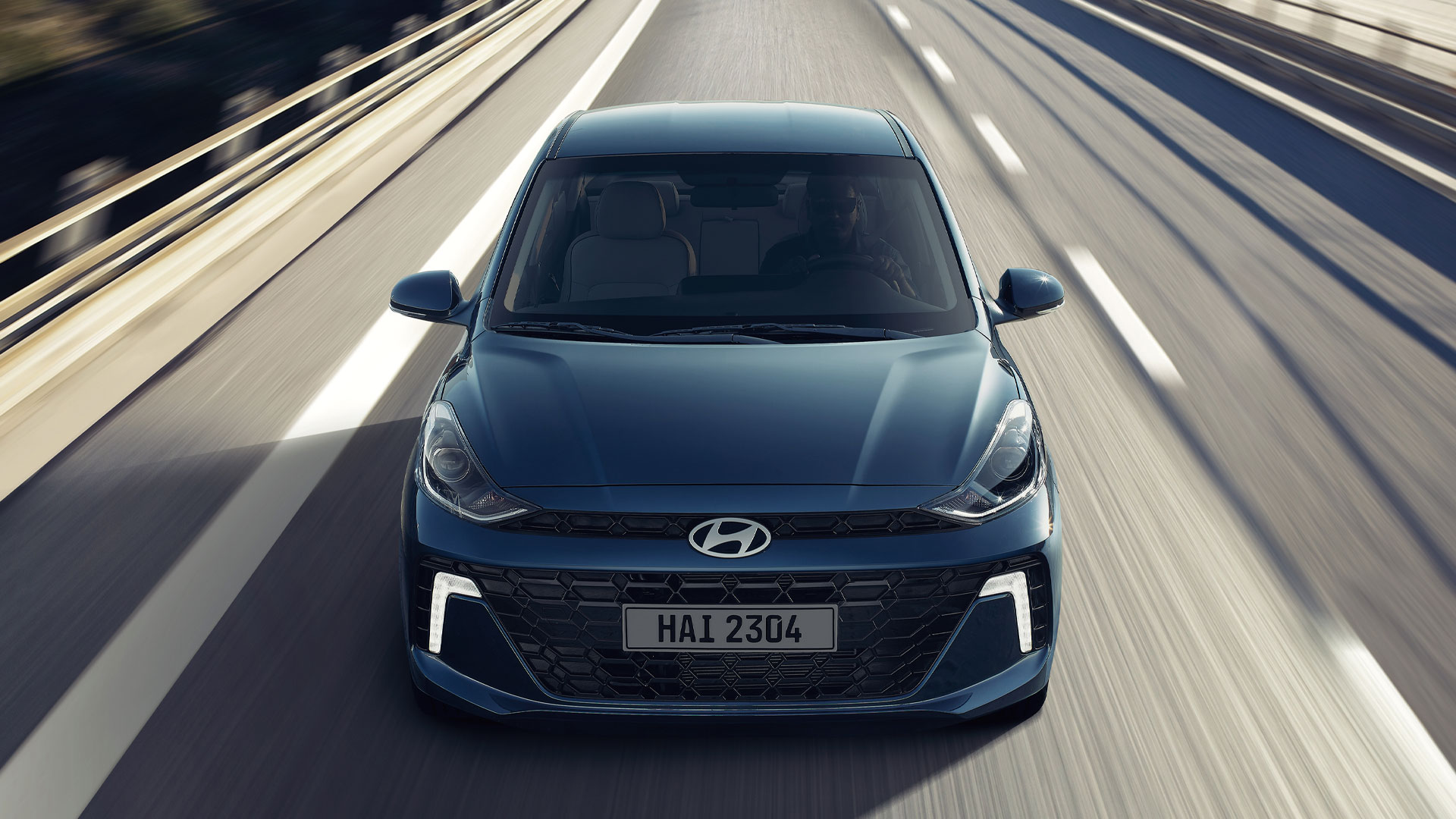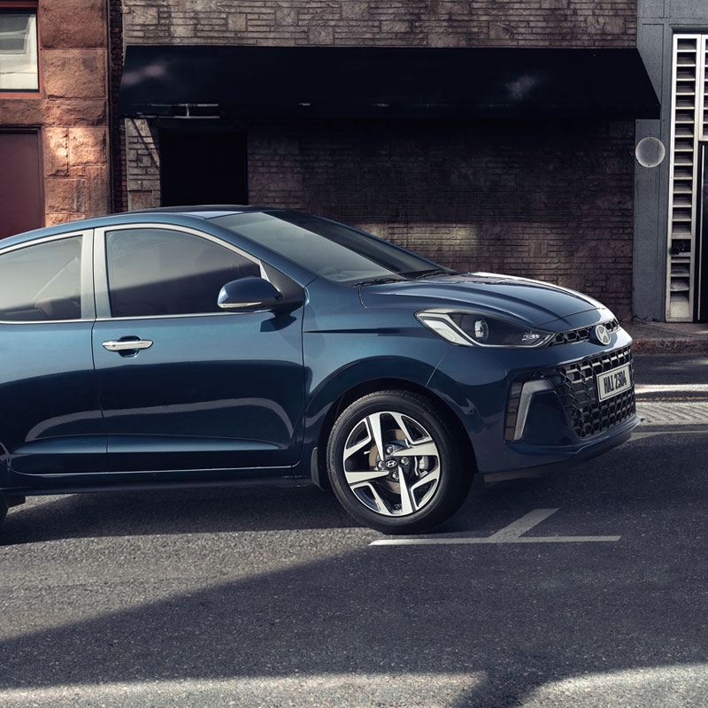 El Grand I10 Sedán tiene un diseño aerodinámico que no sólo mejora la estabilidad de conducción, sino también reduce la resistencia al viento; cuenta también con una impresionante parrilla delantera, faros delanteros tipo proyector y rines de aluminio de 15”.