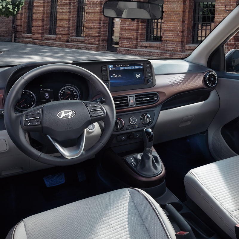 El nuevo Grand I10 Sedán cuenta con un diseño interior renovado y elegante, amplio espacio para pasajeros, gran maletero, versatilidad de compartimientos en el interior y asientos ergonómicos.