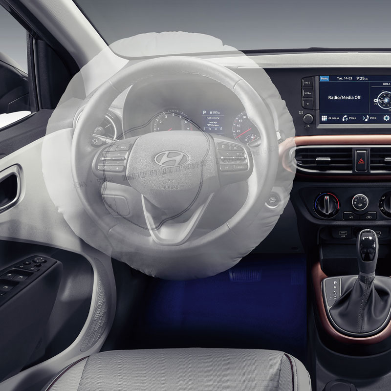 El Grand I10 Sedán ofrece airbags para el conductor y pasajero, además de un sistema de Antibloqueo de Frenos (ABS) que evita que en un frenado de emergencia el vehículo resbale y se deslice, de esta manera el conductor mantiene siempre el control.